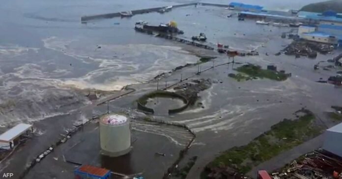 بعد موجة تسونامي.. فيديو يرصد بلدة روسية تغمرها المياه