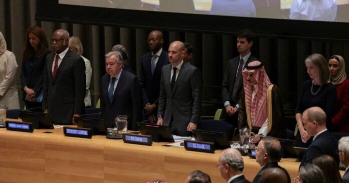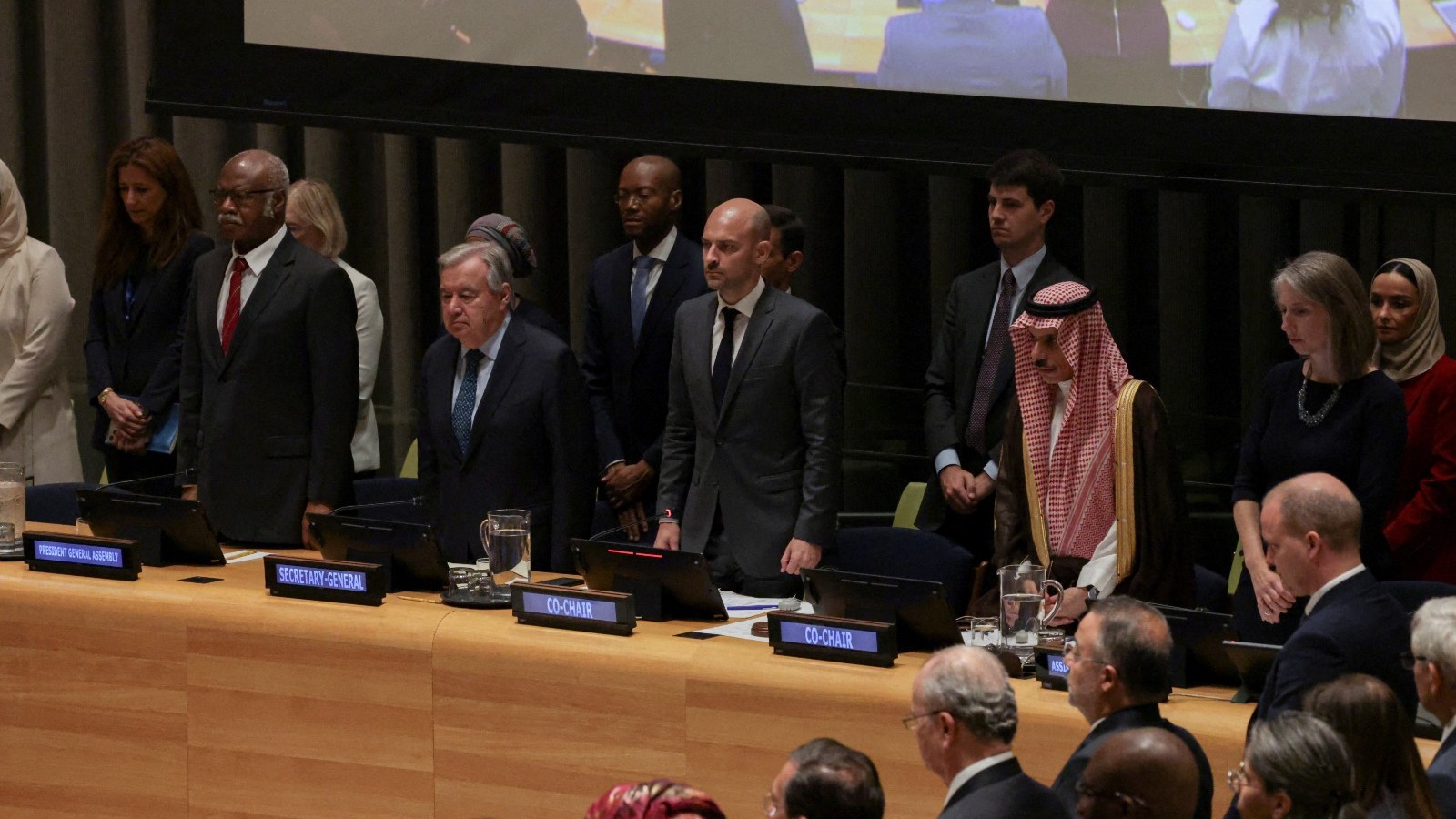 وانطلقت أعمال المؤتمر الدولي حول التسوية السلمية لقضية فلسطين وتنفيذ حل الدولتين، الاثنين، برئاسة مشتركة بين السعودية وفرنسا، وسط مشاركة دولية واسعة في مقر الجمعية العامة للأمم المتحدة.