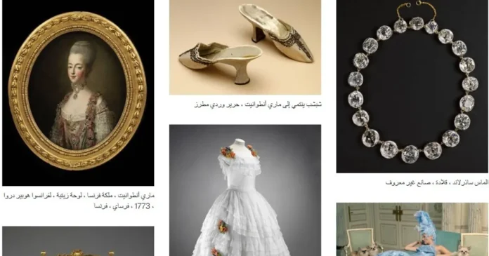 يقام المعرض في متحف فيكتوريا وألبرت تحت شعار “أناقة ماري أنطوانيت”، ويشهد عرض مجوهراتها المبهرة، وأحذيتها المصنوعة من الحرير، وفساتينها الباذخة.