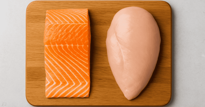 اختيار بين الدجاج والسلمون يعتمد على هدفك الصحي، لكن الجمع بينهما هو أفضل طريقة للحصول على أعلى فائدة غذائية.