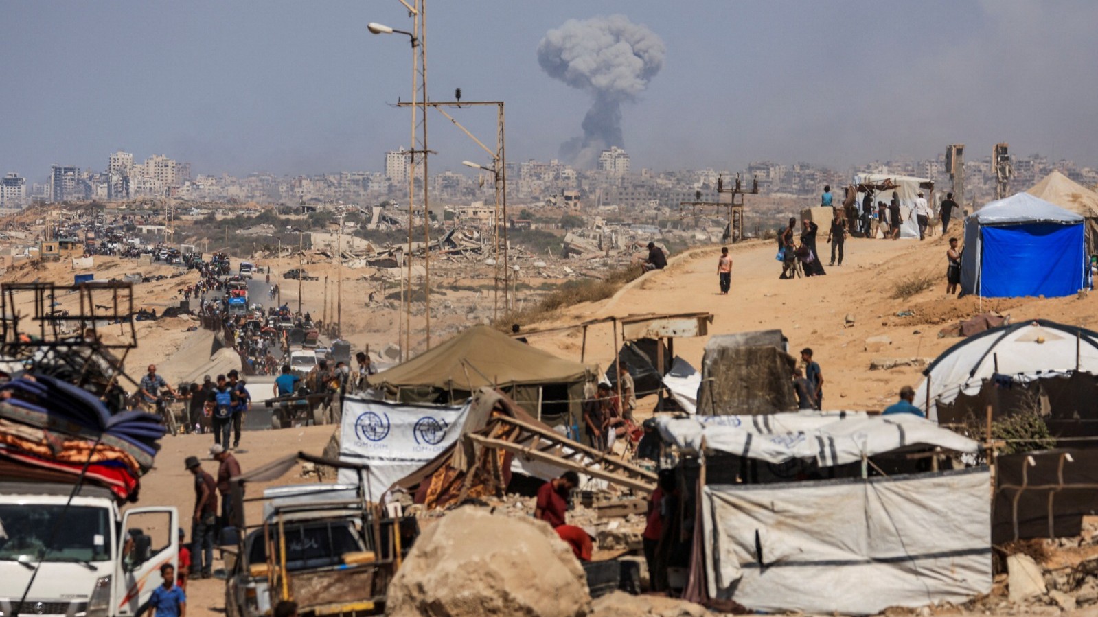 وتسعى إسرائيل إلى إجبار جميع سكان مدينة غزة على النزوح إلى منطقة المواصي، جنوب القطاع، ولكن وكالات الإغاثة الدولية تشير إلى أن “الأوضاع هناك مزرية”، حيث لا تتوفر أماكن لإقامة خيام النازحين، كما لا تتوفر مصادر للطعام والمياه والدواء.