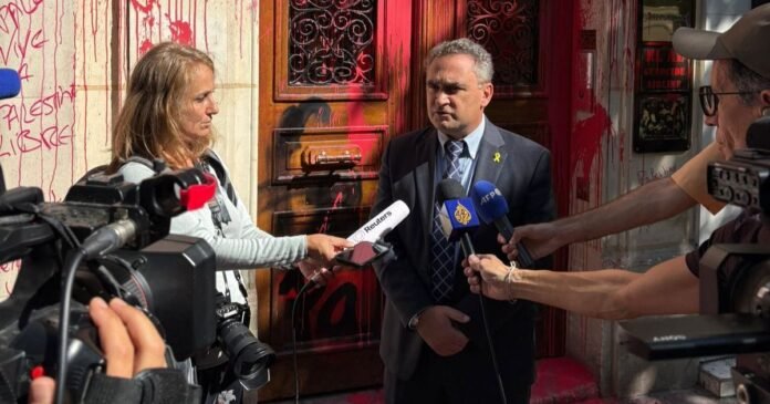 احتجاجاً على حرب غزة.. تشويه واجهة مكتب “العال” الإسرائيلية في باريس