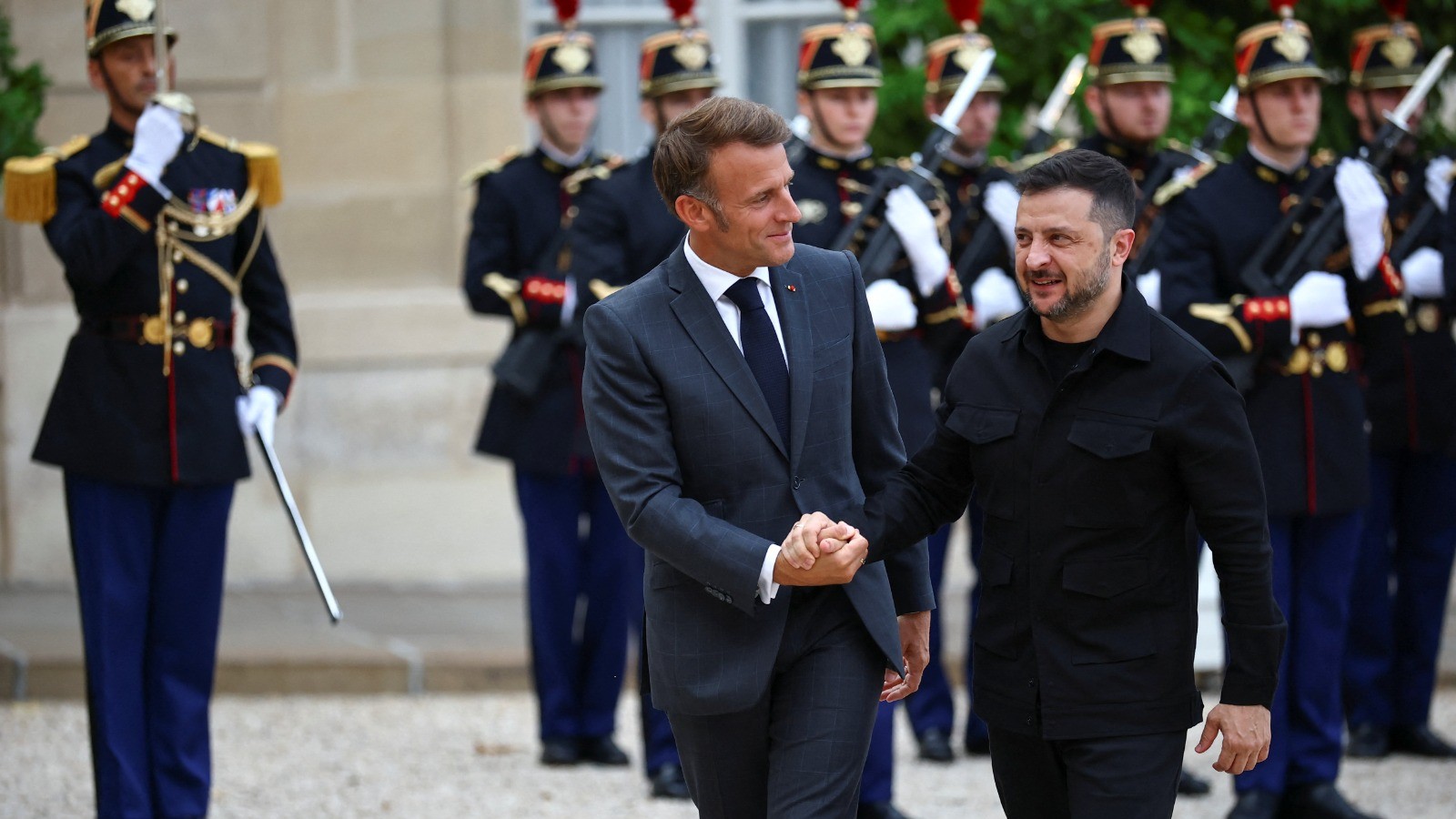 وقال الرئيس الفرنسي إيمانويل ماكرون في مؤتمر صحافي مشترك مع زيلينسكي إن الدول الأوروبية مستعدة لتوفير الضمانات الأمنية لأوكرانيا، لإنهاء الحرب.