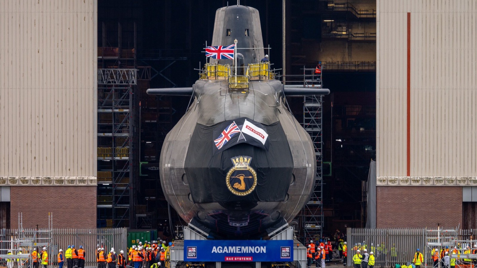 دشنت البحرية البريطانية الغواصة النووية السادسة من فئة Astute، تحت مسمى HMS Agamemnon، في حوض بناء السفن التابع لشركة BAE Systems في مدينة بارو إن فورنيس، خلال حفل حضره نحو 500 شخص وترأسه الملك تشارلز الثالث.