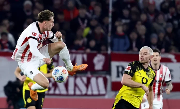 عانى بروسيا دورتموند من طرد جوب بيلينغهام في بداية الشوط الثاني، ثم استقبلت شباكه هدفاً في الدقيقة 75 ليتعادل 1-1 على ملعب فرايبورغ في دوري الدرجة الأولى الألماني لكرة القدم الأحد، ويهدر فرصة الانفراد بالمركز الثاني.
