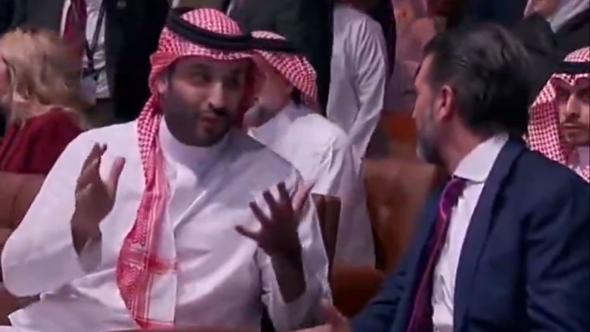 دبي، الإمارات العربية المتحدة (CNN)— أثار ولي العهد السعودي، الأمير محمد بن سلمان، تفاعلا بمقطع فيديو يظهر فيه خلال حديث جانبي مع دونالد ترامب الابن، نجل الرئيس الأمريكي، دونالد ترامب، خلال حضورهما جلسة حوارية للرئيس السوري المؤقت، أحمد الشرع.