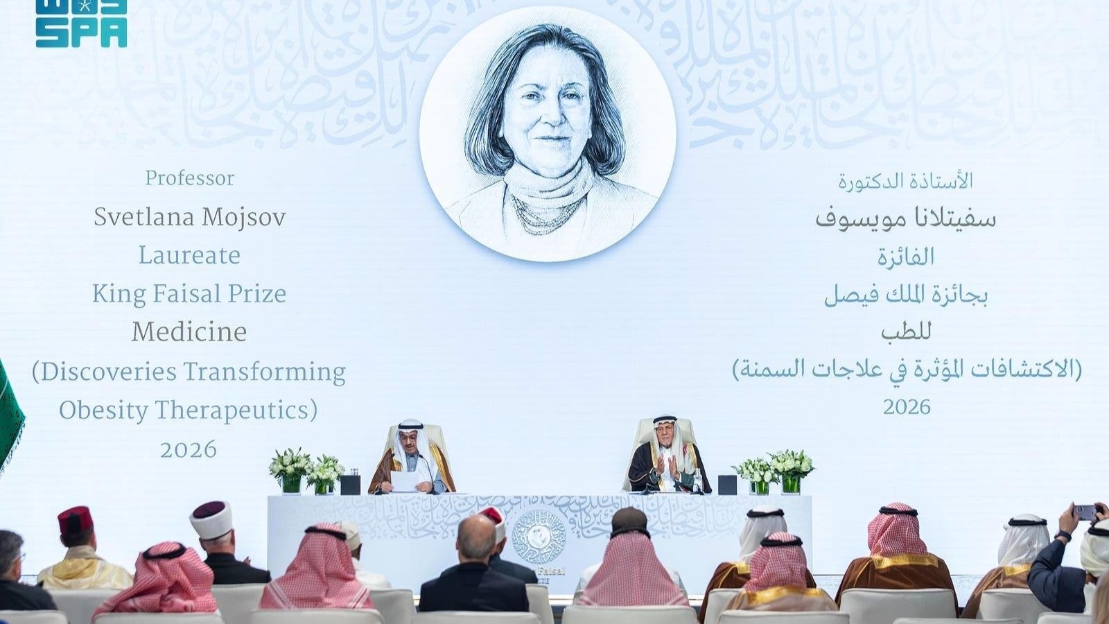فيما منحت جائزة الملك فيصل للطب لهذا العام، وموضوعها “الاكتشافات المؤثرة في علاجات السمنة”، لأستاذة جامعة روكفلر الأميركية البروفسورة سفيتلانا مويسوف، نظير عملها الرائد في اكتشاف ببتيد شبيه الغلوكاغون (GLP-1) النشط بيولوجياً. كذلك تقديمها دراسات فسيولوجية دقيقة أبانت أن هذا الهرمون محفز قوي لإفراز الإنسولين، وقد أسهمت هذه الاكتشافات في تطوير فئة جديدة من العلاجات لمرض السكري والسمنة.