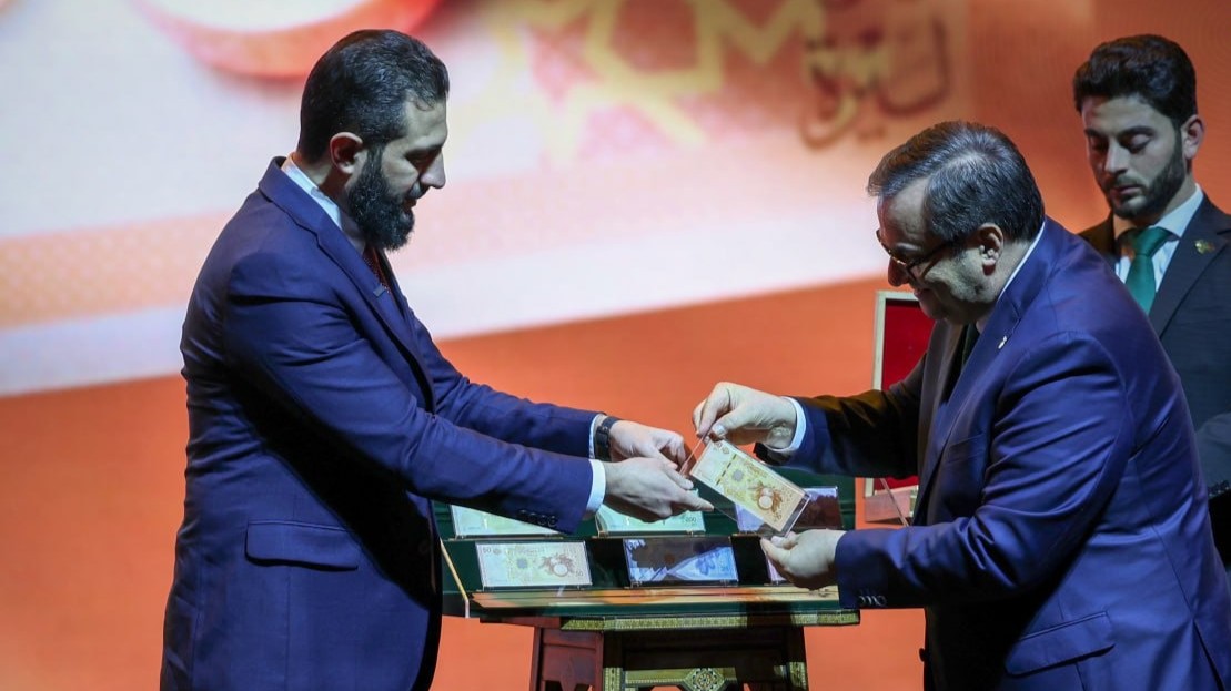 وكان الرئيس السوري، وحاكم المصرف المركزي، عبد القادر الحصرية، أطلقا العملة السورية الجديدة، الاثنين الماضي، خلال فعالية بقصر المؤتمرات في دمشق حضره العديد من الوفود الرسمية والشعبية.