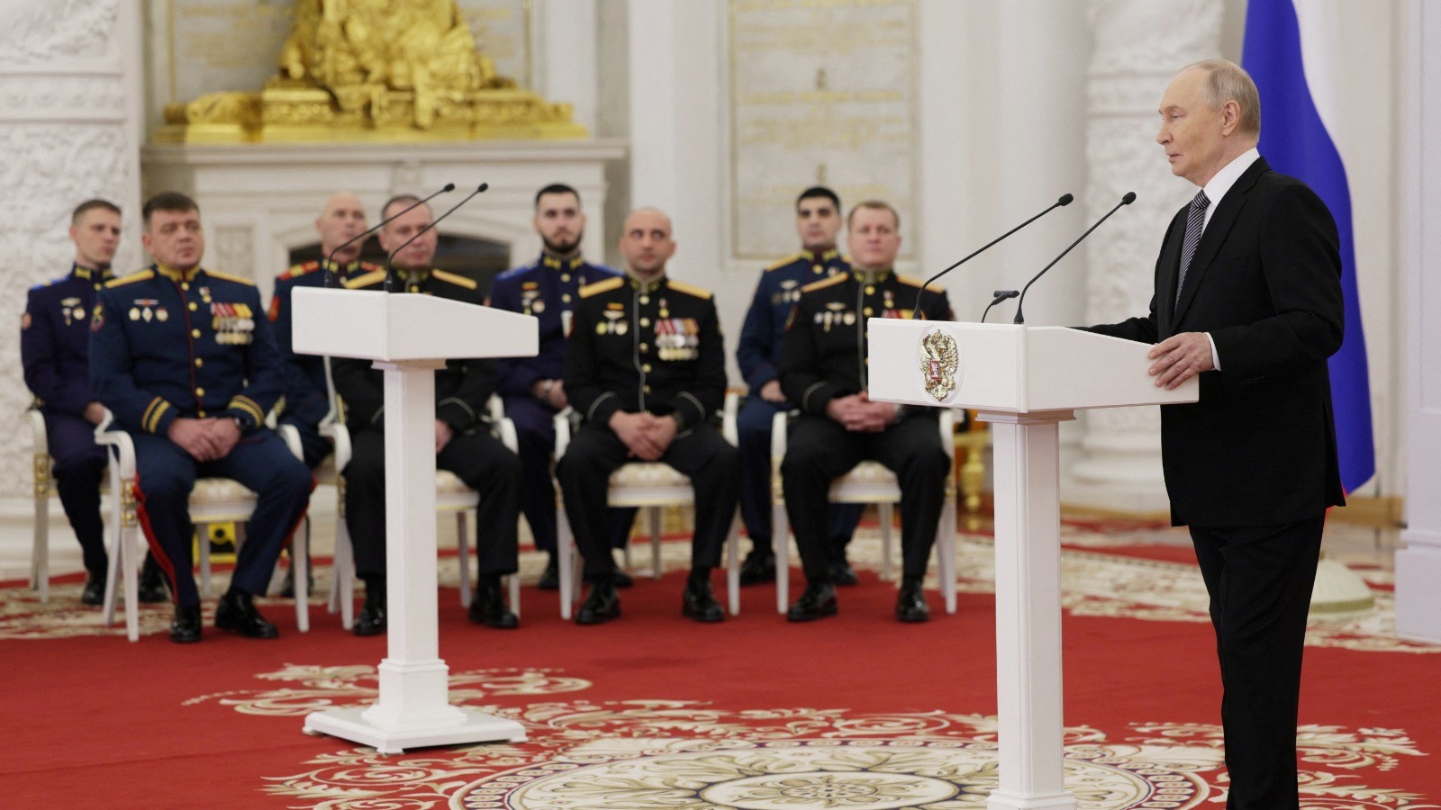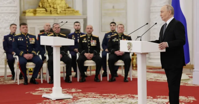 واعتبر بوتين خلال حفل لتكريم عسكريين في الكرملين، أن دونباس “أرض روسية”، واصفاً ذلك بأنه “حقيقة تاريخية”، وأضاف: “روسيا ستكمل العملية العسكرية الخاصة (الحرب في أوكرانيا)، حتى نهايتها المنطقية، وستحقق أهدافها”. وذكر أن الأراضي التي وصفها بأنها “أعيدت من أوكرانيا” مهمة، و”كانت دائماً جزءاً من روسيا”.