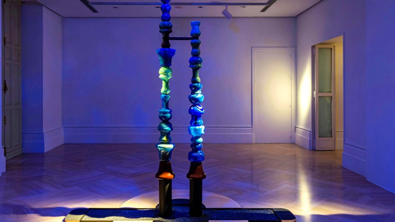 هنا يتحوّل الزمن إلى مادّة حية تتشكّل عبر الخزف والزجاج والمعادن، فتغدو الأعمال كمحاولات لاستعادة الإيقاع الداخلي للمادّة ذاتها، حيث تتجاور العناصر الطقسية الكامنة فيها، بما تحمله من دلالات روحية غير مباشرة، مع الإيقاعات الكونية التي تمنح العمل امتداداً زمنياً أرحب، فينشأ عن هذا التفاعل سرد رمزي، يُعيد وضع الإنسان داخل مسار الزمن بوصفه جزءاً من حركة أوسع من ذاته.