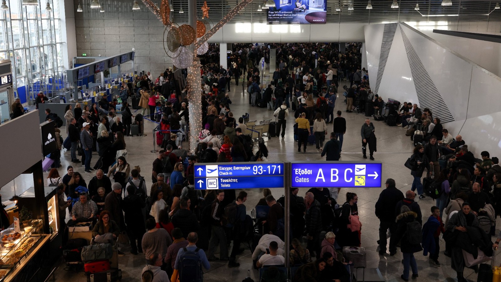 وأشارت هيئة الإذاعة والتلفزيون اليونانية، إلى تعليق رحلات الوصول والمغادرة في مطار إلفثيريوس فينيزيلوس الدولي في أثينا، في الساعة التاسعة صباحاً بالتوقيت المحلي (07:00 بتوقيت جرينتش)، بعد بلاغات من صالة المغادرة، المكتظة بالمسافرين.