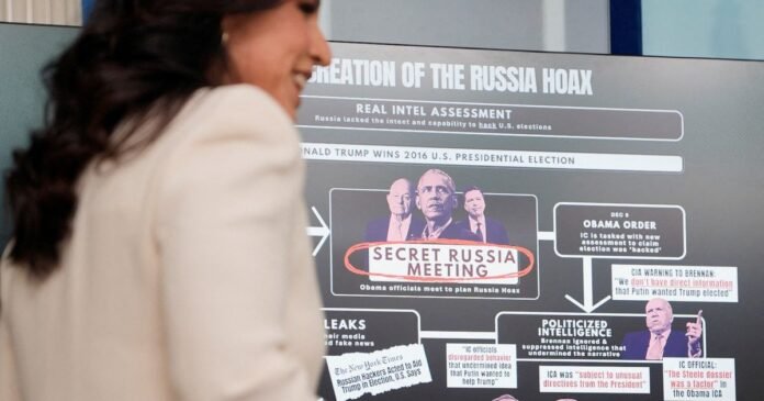 وذكرت أن “هناك أدلة دامغة تُبيّن كيف أن الرئيس السابق باراك أوباما وفريقه للأمن القومي وجّهوا بإعداد تقييم استخباراتي داخل مجتمع الاستخبارات، كانوا يعلمون أنه كاذب”.