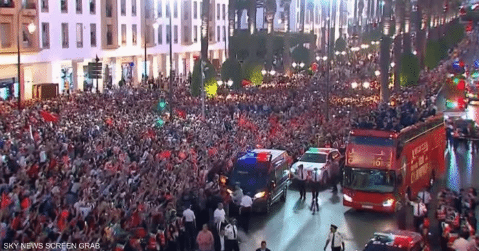 واحتشد الكبار والصغار على الأرصفة والشرفات يحملون الأعلام ويرددون أهازيج “ديما مغرب”، فيما كان “أشبال الأطلس” يلقون عليهم التحية ويلتقطون صورا وفيديوهات بهواتفهم.