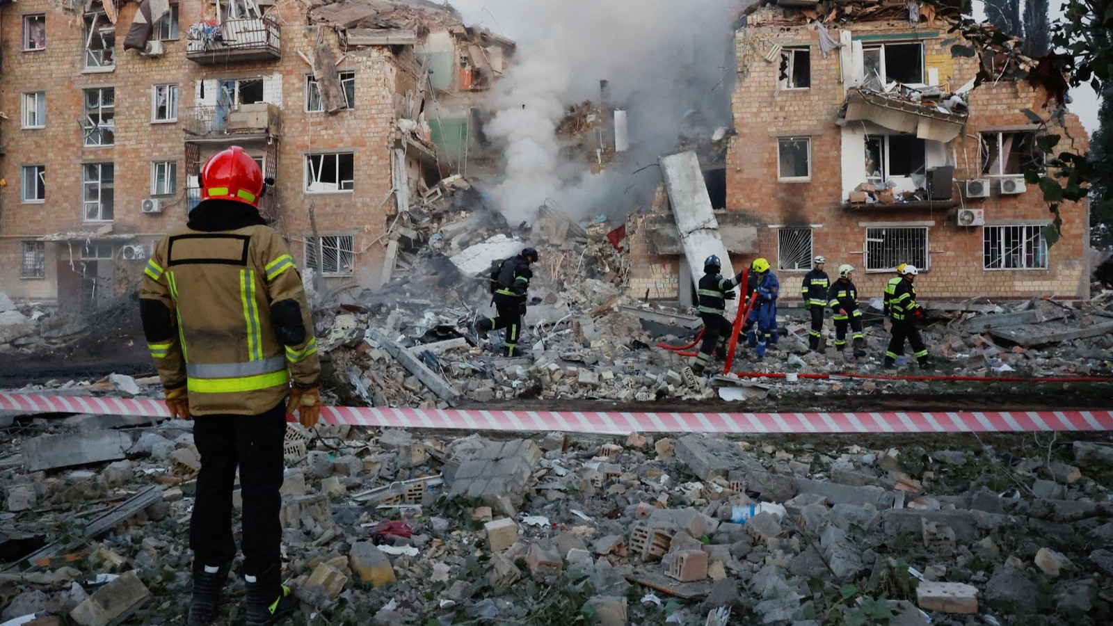 وقال تكاتشينكو إن بناية مؤلفة من خمسة طوابق في حي دارنيتسكي شرق المدينة تعرّضت لتدمير جزئي، وإن فرق الإنقاذ تبحث عن محاصرين تحت الأنقاض، مشيراً إلى أن فرق الطوارئ تتعامل مع تبعات الهجمات في أكثر من 20 موقعاً في العاصمة.