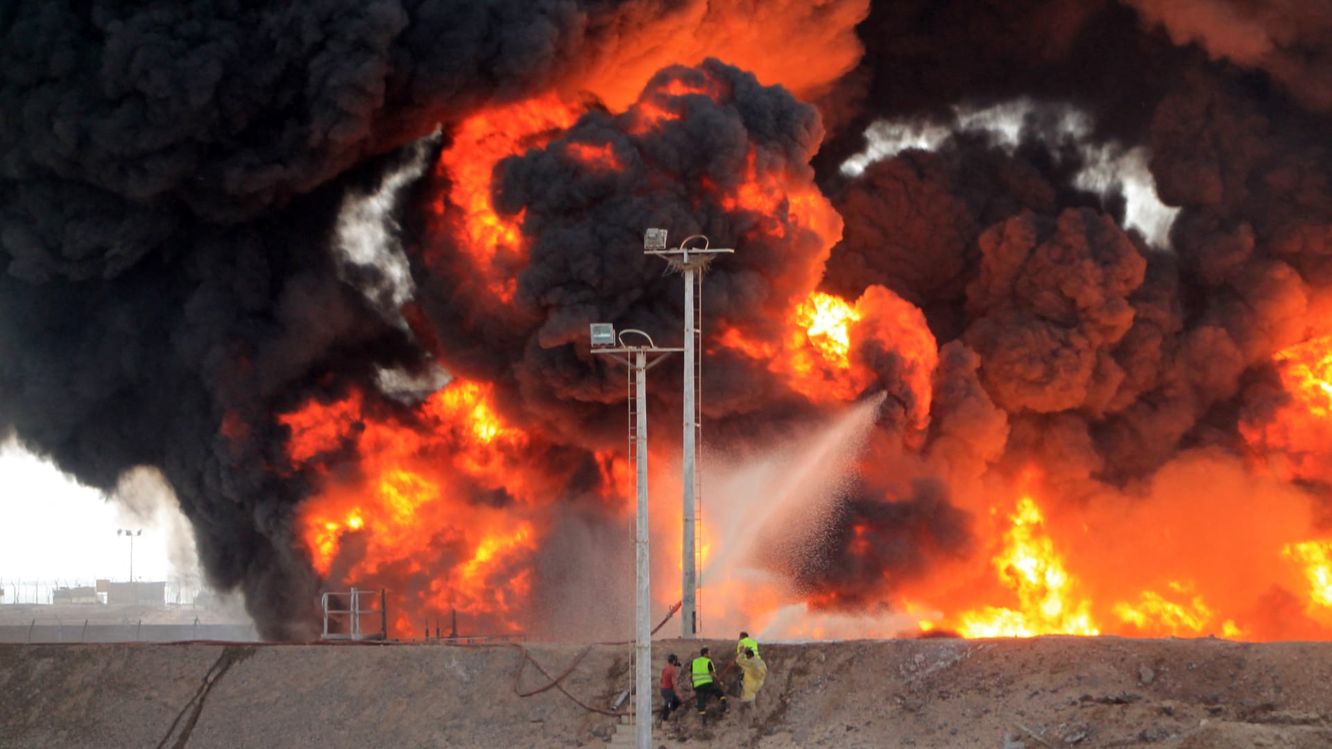 يعرض الفيديو مشاهد لحريق قبل حدوث انفجار مدوي، وسط هرولة الناس هربًا من النيران الممتدة.