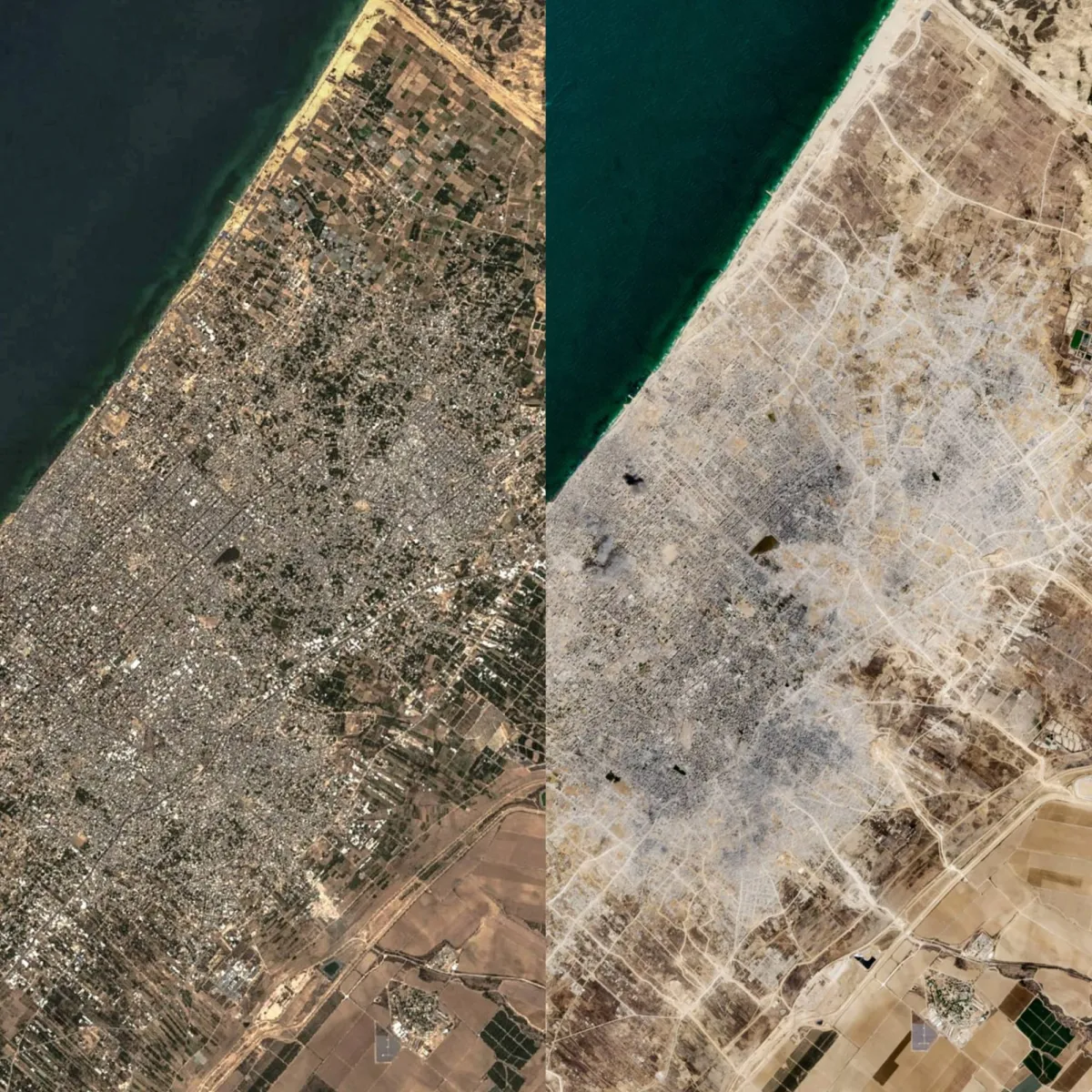 تفاصيل إضافية عن صورتان بالأقمار الصناعية تظهران كيف «مسحت» إسرائيل مدينة غزة