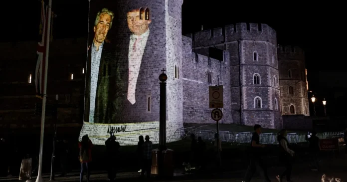 ووصل ترمب إلى بريطانيا، مساء الثلاثاء، في زيارة رسمية، قبل أن يكشف المحتجون عن لافتة ضخمة تحمل صورة لترمب وإبستين بالقرب من قلعة وندسور، ثم عرضوا لاحقاً عدة صور لهما على أحد أبراج القلعة.