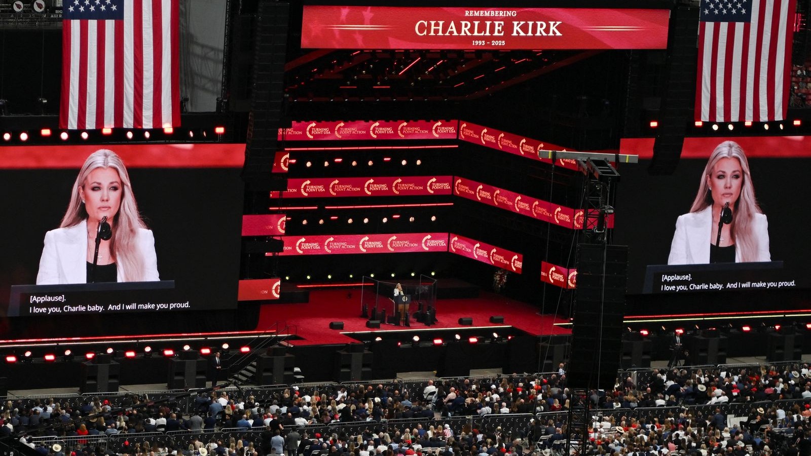 وقالت إريكا كيرك من على المنصة مرتدية بذلة بيضاء: “كل ما بُني في Turning Point USA برؤية تشارلي وعمله الجاد، سنجعله أعظم بعشر مرات بقوة ذكراه”.