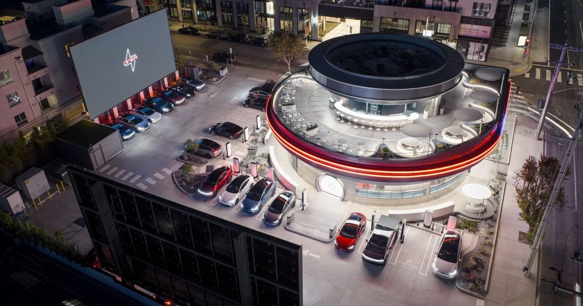 يقع المطعم في شارع سانتا مونيكا الشهير بمنطقة هوليوود في الولايات المتحدة، وهو عبارة عن مزيج بصري وتجريبي بين مطاعم “الدرايف إن” الأميركية الكلاسيكية من منتصف القرن العشرين، وأجواء مستقبلية تحاكي عالم أفلام “Blade Runner”، في مشروع يجمع بين الطعام وعروض السينما وشحن المركبات الكهربائية.