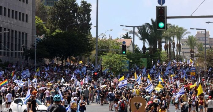 شارك آلاف الإسرائيليين في إضراب عام شمل قطاعات مختلفة، تخلله إغلاق طرق رئيسية بينها الطريق السريع بين القدس وتل أبيب. ولوّح المتظاهرون بالأعلام الإسرائيلية ورفعوا صور الرهائن، بينما علت أصوات الصفارات والأبواق في مسيرات اجتاحت مدن البلاد.