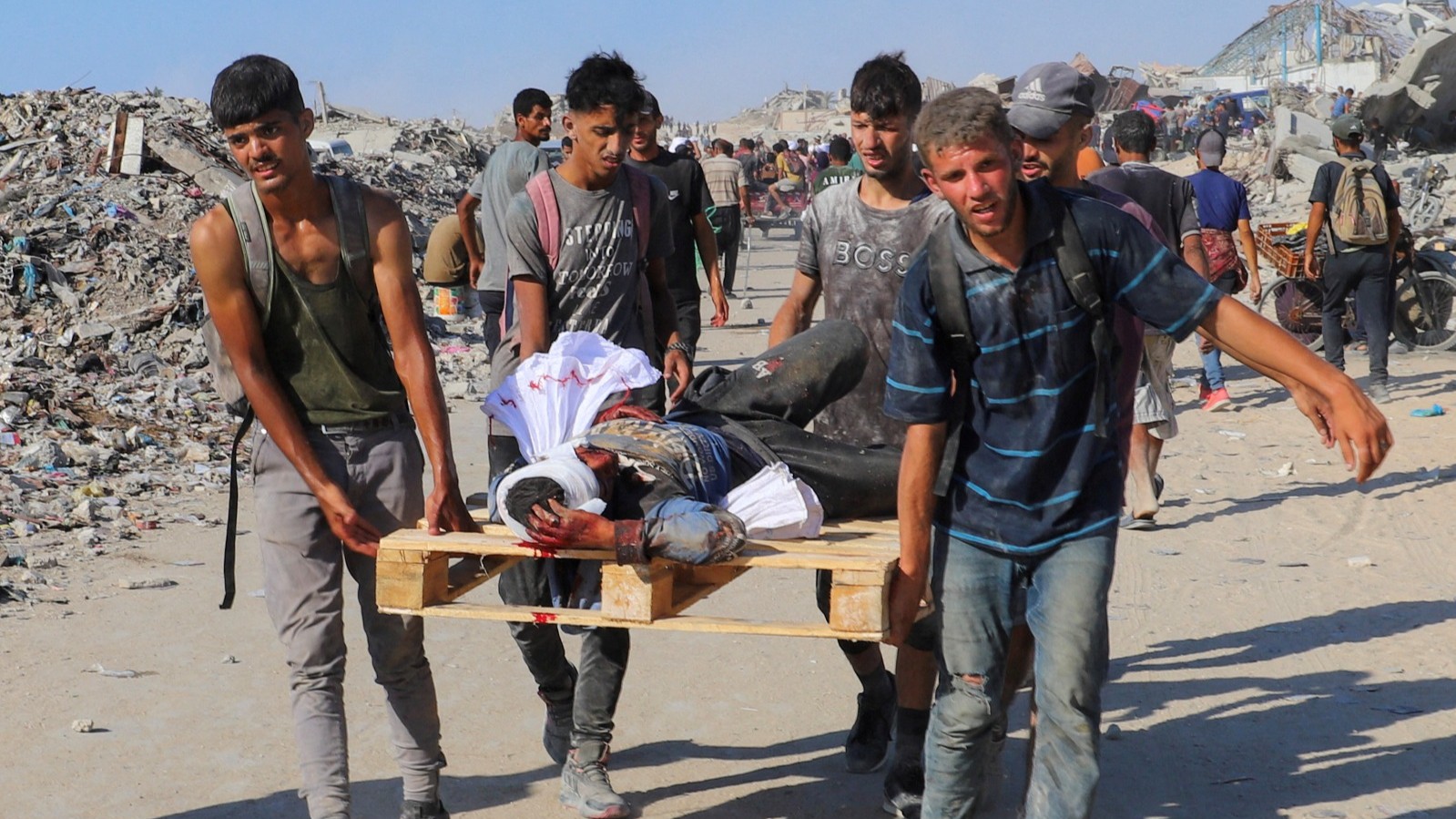 وفي المستشفى، لُفّت بعض الجثث ببطانيات سميكة منقوشة بسبب نقص الأكفان، نتيجة استمرار القيود الإسرائيلية على المعابر، وتزايد أعداد القتلى يومياً، وفقاً لما ذكره فلسطينيون.