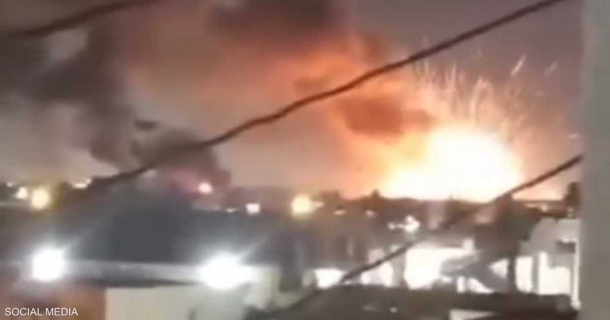 ووثقت مقاطع فيديو على منصات التواصل الاجتماعي، تصاعد الدخان وانطلاق القذائف واندلاع حريق في المخزن، من جراء الانفجار.