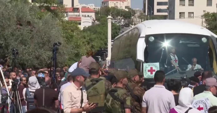 ما هو لحظة وصول الأسرى الفلسطينيين إلى رام الله عبر حافلات الصليب الأحمر؟