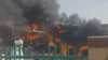 وأظهرت لقطات فيديو شاحنات محملة بالمساعدات الغذائية وقد اشتعلت فيها النيران بعد القصف الجوي.