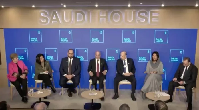 فعلى هامش الاجتماع السنوي للمنتدى الاقتصادي العالمي 2026 بمدينة دافوس السويسرية، خُصصت في جناح «البيت السعودي» جلسة حوارية بمشاركة سفيرة خادم الحرمين الشريفين لدى الولايات المتحدة، الأميرة ريما بنت بندر، ووزير الاستثمار المهندس خالد الفالح، ووزير المالية محمد الجدعان، ووزير الاقتصاد والتخطيط فيصل الإبراهيم، والمديرة العامة لصندوق النقد الدولي كريستالينا غورغييفا، إلى جانب رئيسة مجلس إدارة «العليان للتمويل» لبنى العليان، بعنوان «من الإصلاح إلى التنفيذ: تطبيق التغيير واسع النطاق».
