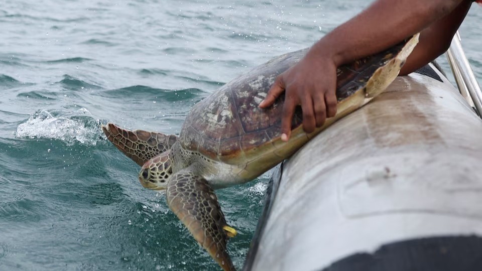 وأنقذ فريقه 3 أنواع من السلاحف البحرية.